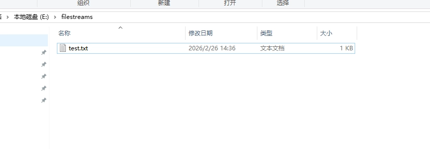 平时常见的文件内容都是属于主数据流,比如下面命令可以创建的普通文件