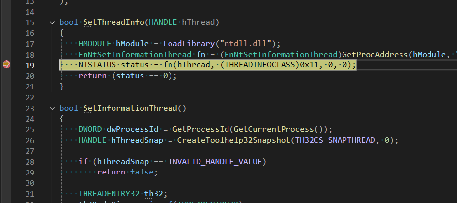 FnNtSetInformationThread fn = (FnNtSetInformationThread)GetProcAddress(hModule, "NtSetInformationThread");