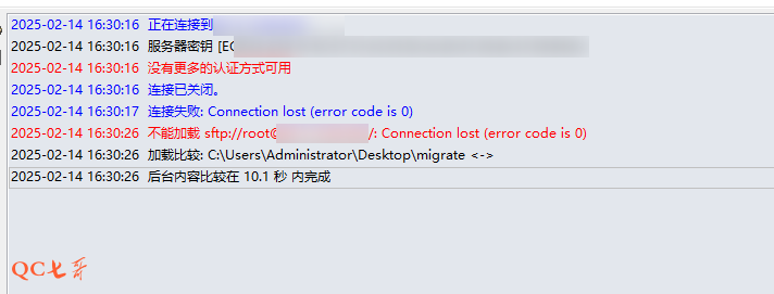 再次通过 beyond compare 尝试 sftp 连接 ubuntu,查看服务端打印日志如下