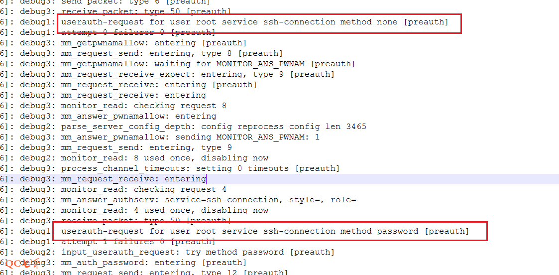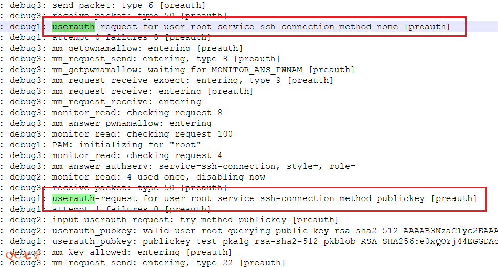 这里看到从 method 从 none 直接走到了 password 认证,直接跳过了 publickey 的认证方式