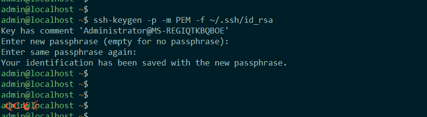 使用命令 ssh-keygen -p -m PEM -f ~/.ssh/id_rsa 将前面的私钥转换为 PEM 格式