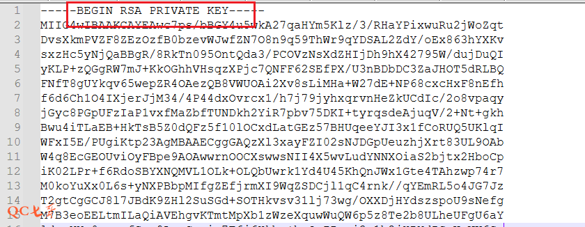 转换后的私钥文件的前面显示为 RSA 字样