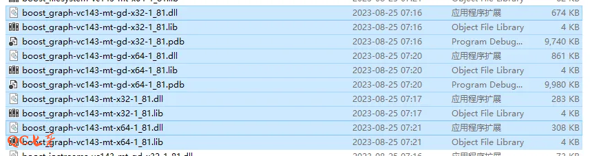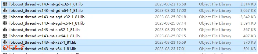 编译出来的boost库命名规则,包含完整的9部分,如库文件名称 libboost_thread-vc143-mt-sgd-x32-1_81.lib