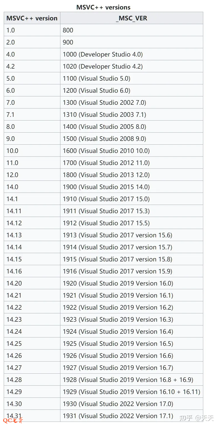 4、编译器名称及其版本,vc143 指的是 msvc-14.3,对应 Visual Studio 2022,vs的发行版本见后图