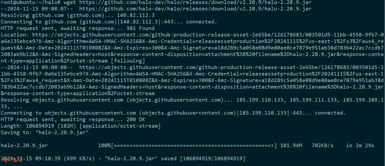 wget https://github.com/halo-dev/halo/releases/download/v2.20.9/halo-2.20.9.jar -O halo.jar