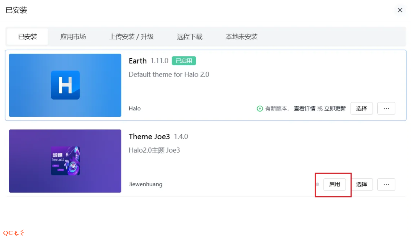 安装完后,在主题配置中启用刚安装的 “Joe3” 主题