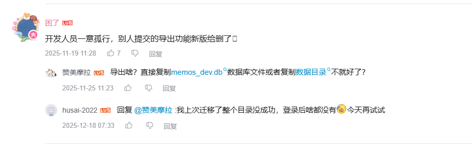 网上对 memos 的评价比较差,API、页面大改非常随意