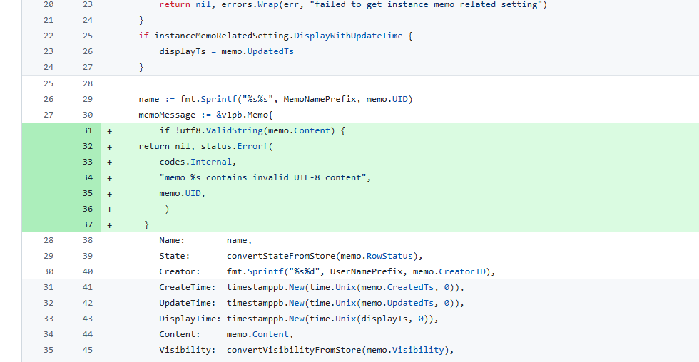 仔细分析了下 memos 项目的代码实现,发生 uft8 错误并不是因为换行的原因,只不过我在本地测试的时候多了个换行符导致长度变动了