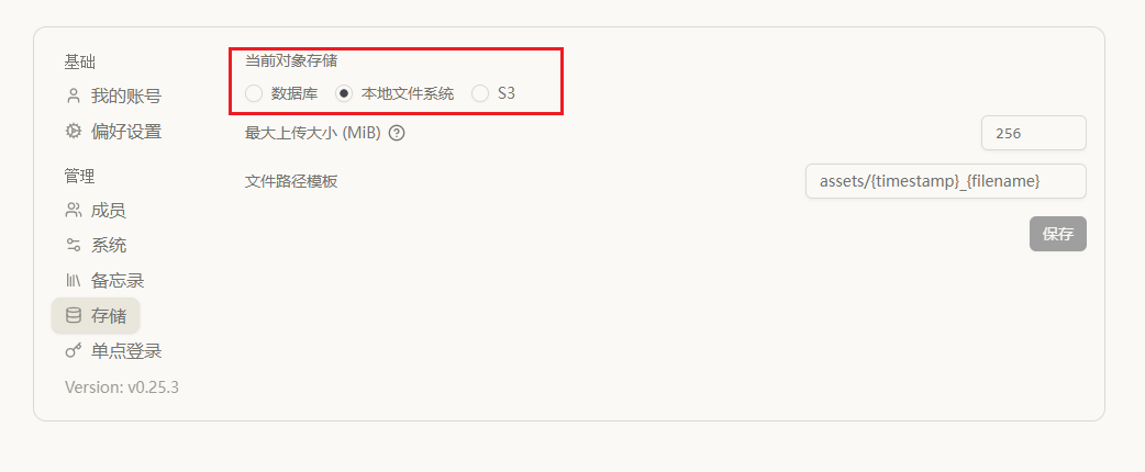 登录 web 页面后,在系统设置中将对象存储改为本地文件系统,默认是会将文件塞到数据库里面,数据库很快会炸掉