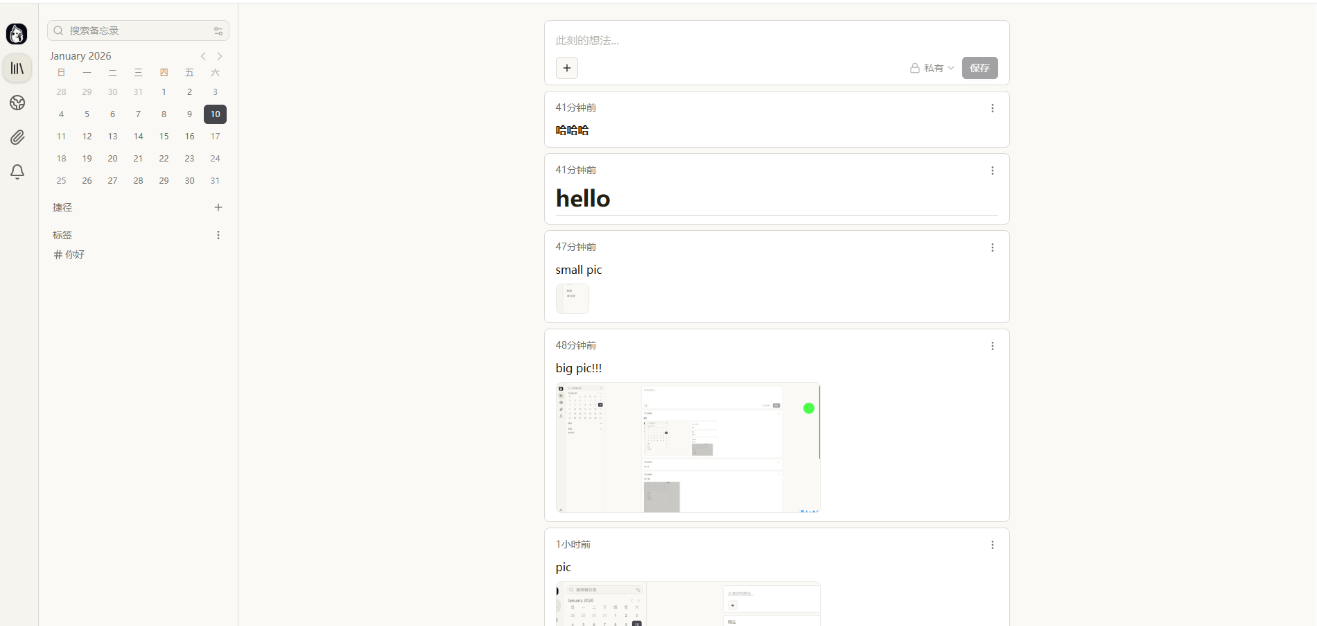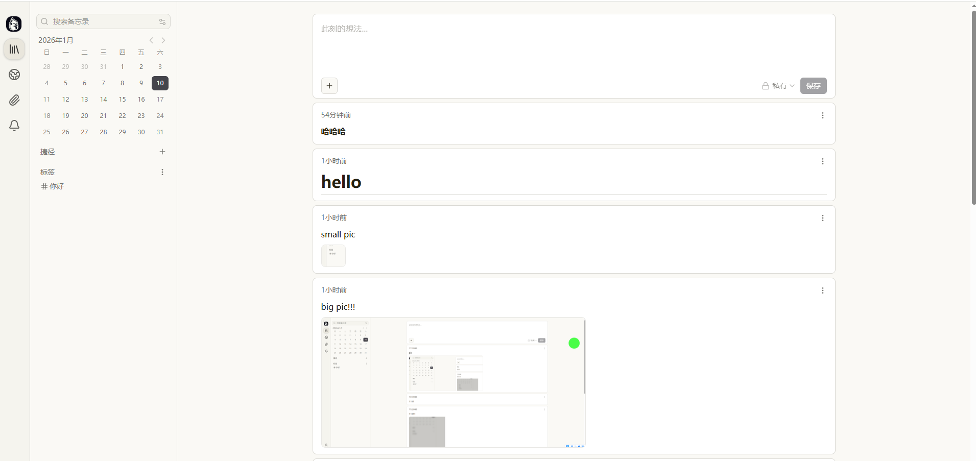 对 memos 添加部分记录测试显示如下,整体显示还比较满意,也发现一些小问题,不过问题不大并不影响正常使用