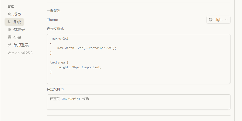 另外在 memos 的系统设置中,提供自定义 css 样式代码,经过对页面的简单分析,添加几行样式代码如下