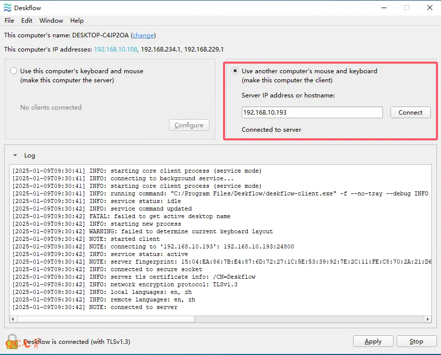 deskflow 运行需要选一台作为 server 节点,其他节点作为 client