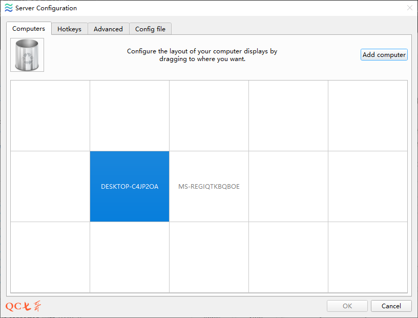 在 server 的配置中可以发现,deskflow 支持多达 15 台桌面 pc 共用同一套键盘鼠标