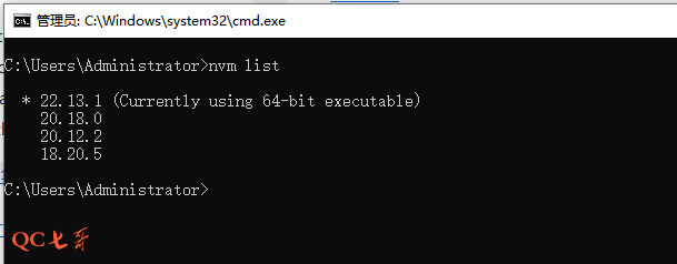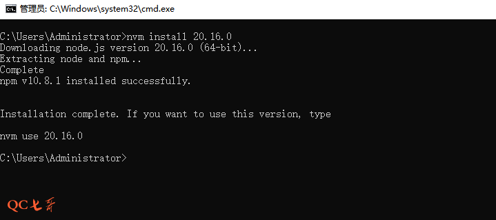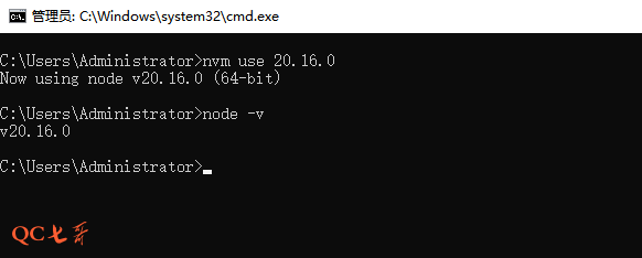 版本切换,使用 use 指令切换本地的已安装版本 nvm use 20.16.0