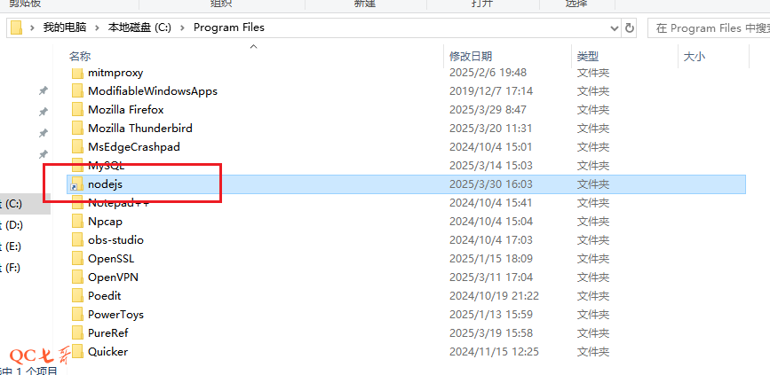 3、切换 ndoe 版本的时候, nvm 就会在 C:\Program Files 路径下增加一个 node 的路径快捷方式