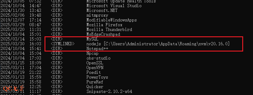 显示 nodejs 指向正是 nvm 下的某个版本目录