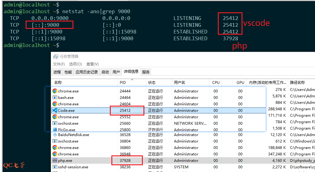 xdebug 是 php 的一个组件,在 vscode 启动调试时, vscode 监听了 9000 端口