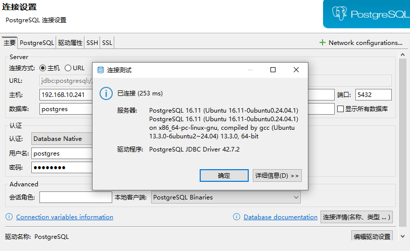 默认 postgres 是使用 peer 认证(本地登录无需密码),如果需要远程访问的话,修改 /etc/postgresql/16/main/pg_hba.conf 文件