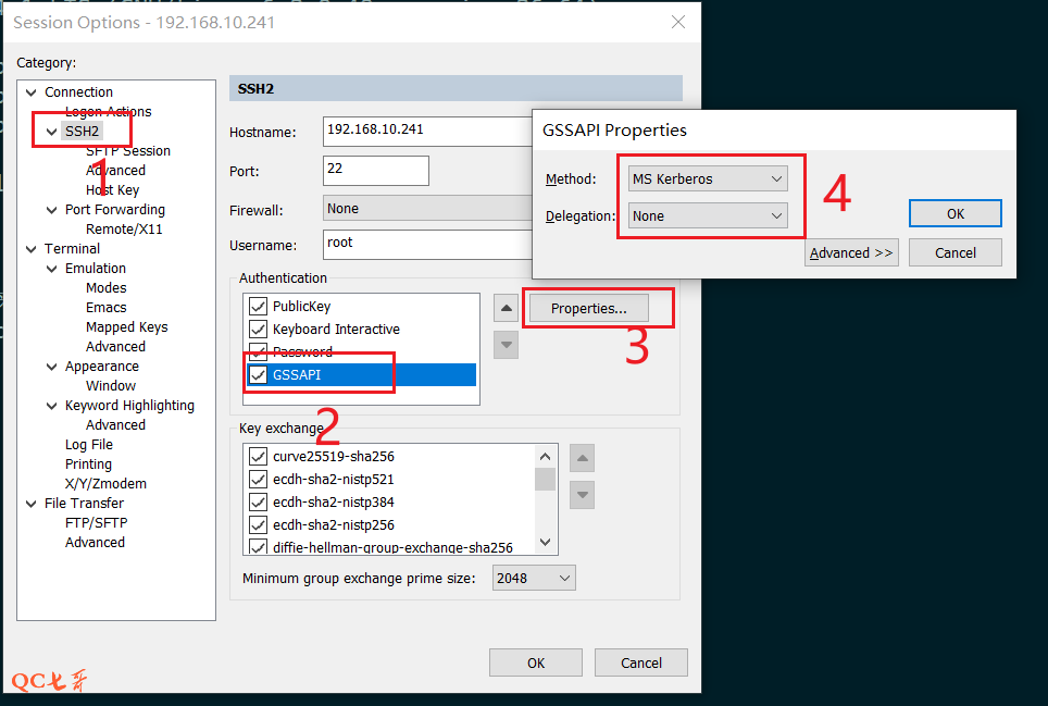 经过一番调研,发现 SecureCRT 下的 GSSAPI 配置导致的,需要将 Method 修改为 MS Kerberos 才行,其他的都不行