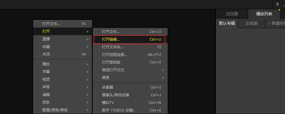 也可以使用 PotPlayer 播放器来获取实时的直播流,在主面板右键打开链接