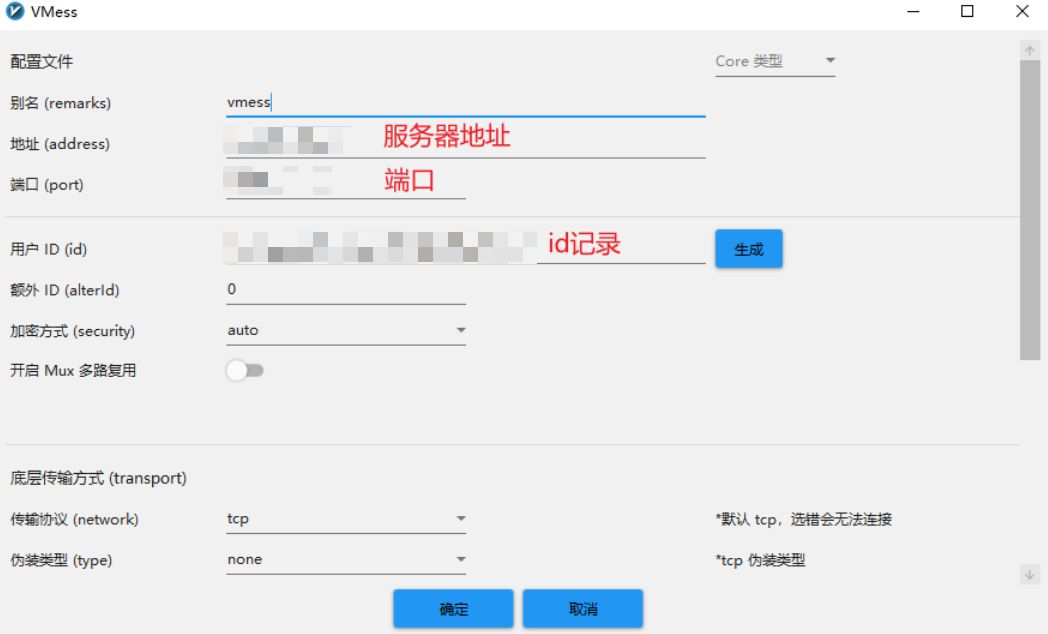在配置窗口中,填入服务端的信息,然后确定