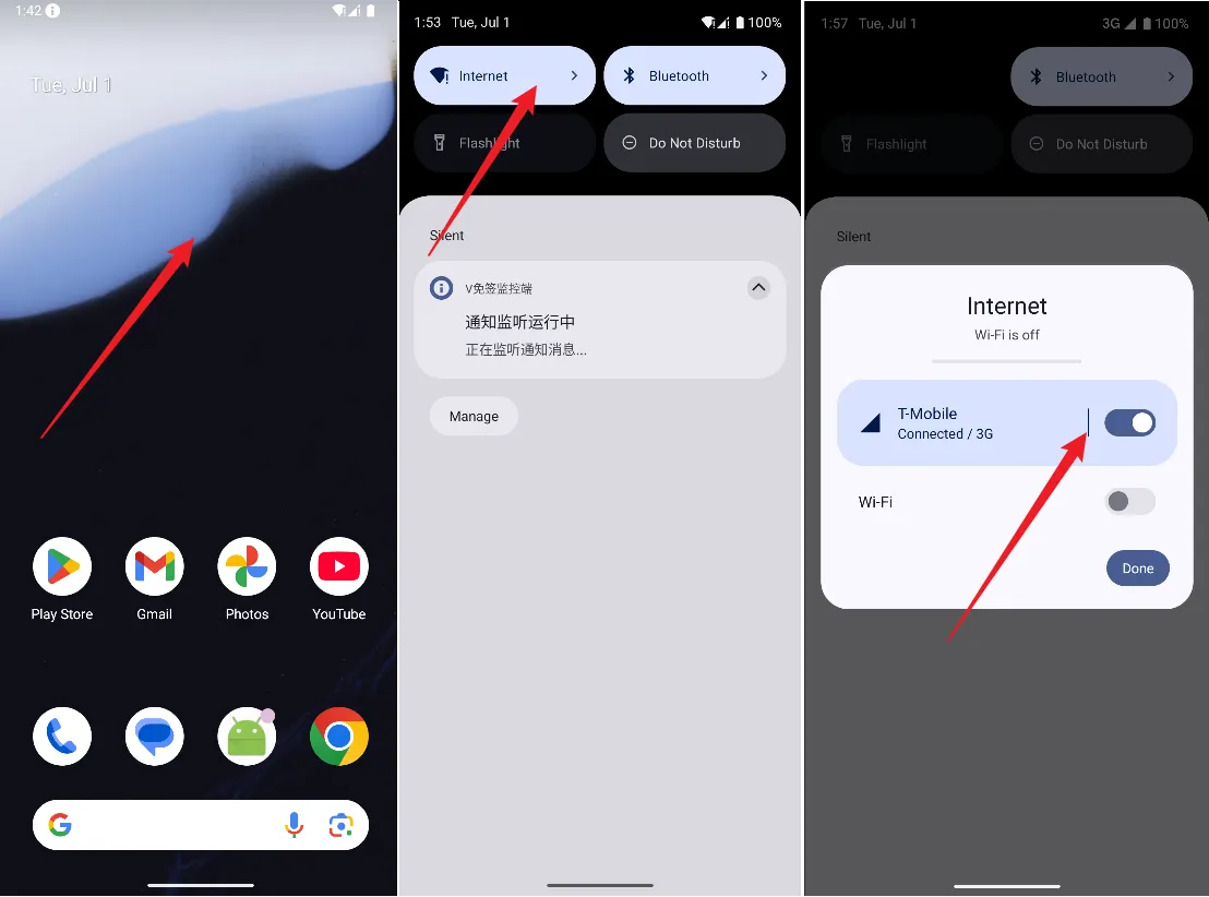 空白处下滑,然后点击 internet,在弹出的窗口中启用 T-Mobile