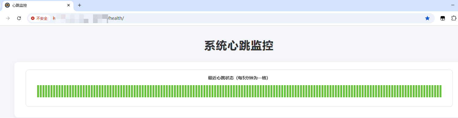 一个是直接输入自己的 health 网址如 https://www.xxx.com/health 访问,显示手机客户端的心跳状态,单个条目为 5分钟,能查看大概最近 12 个小时的状态