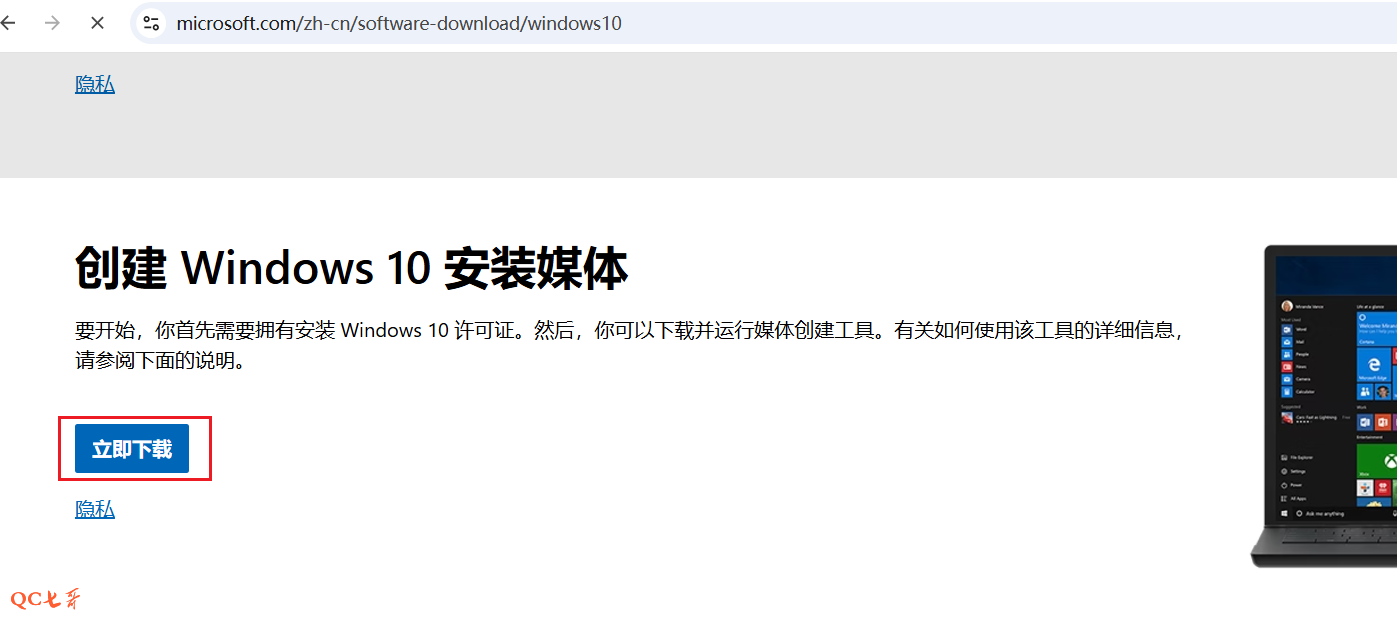 打开微软的官方地址 https://www.microsoft.com/zh-cn/software-download/windows10