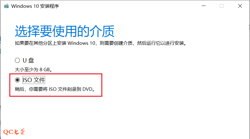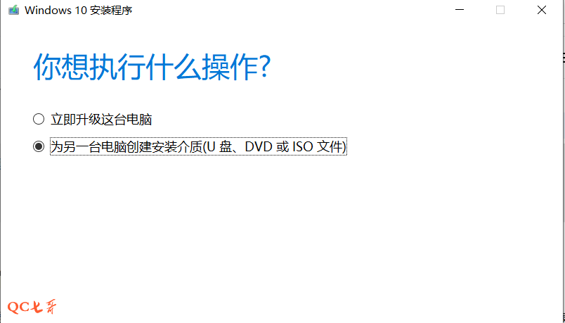 下载得到一个 MediaCreationTool_22H2.exe 的执行文件,双击运行该文件,其中下面这步选择